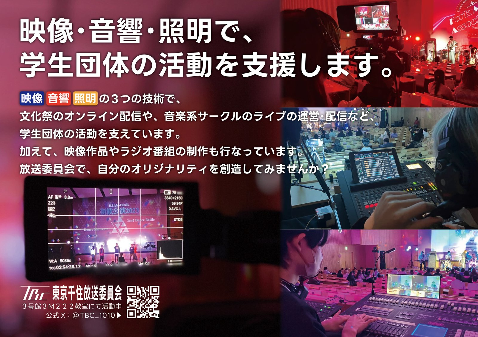 放送委員会は縁の下の力持ちとして学生団体の活動サポートや、オリジナルの映像作品を制作しています! 定期的な講習会があるので初心者の方も大歓迎!!! 年2回の合宿・レクを通して学年隔たりなく親睦を深めてます!! みんなで「楽しい」をつくろう!
