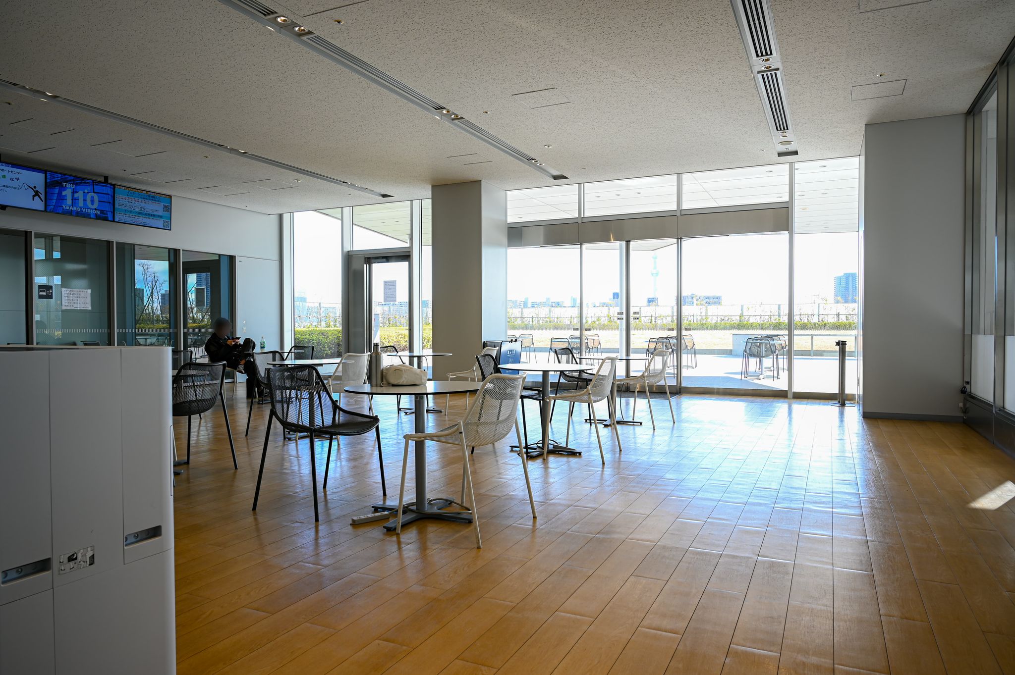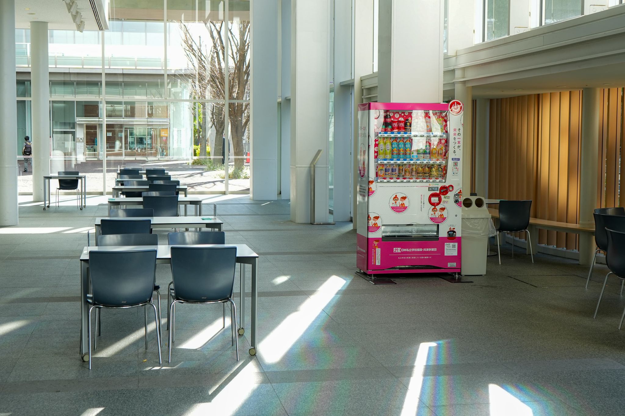 ここは外からのアクセスが良く、スペースも広いため、コンビニや弁当などを大学周辺で買って食事するのに向いている。道路側は全面窓になっており、日当たりが良く、開放感がある。著者がイチオシするスペースだ。