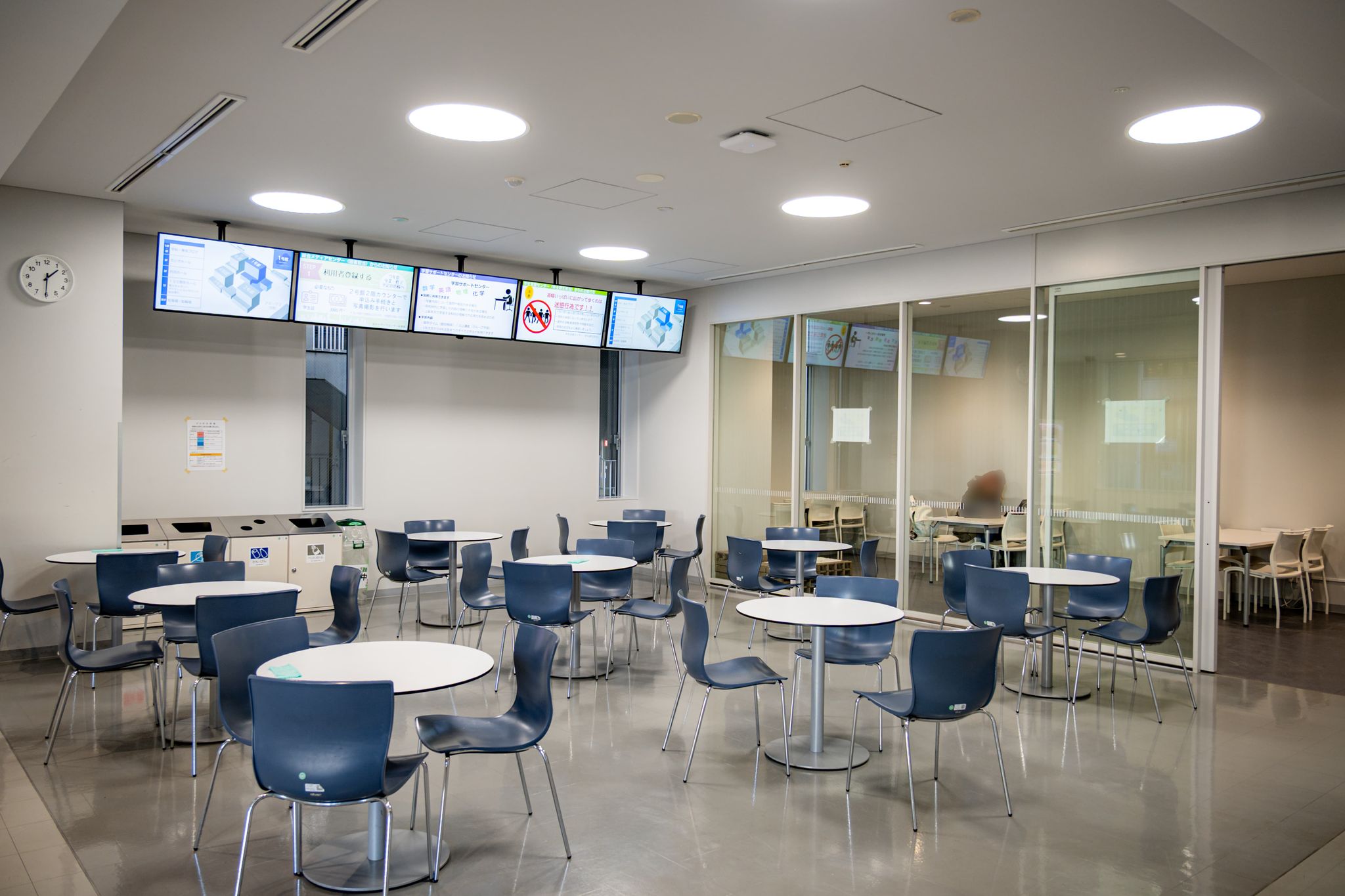 ここには学食があり、日替わりのご飯ものの食事を楽しめる。しかしここは昼食時の人気スポットなので、すぐ席が埋まってしまうことが難点だ。
